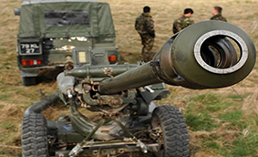 Artillery is a class of heavily armed guns designed to launch projectiles far beyond the range and strength of firearms for infantry. Early development of artillery concentrated on the ability to break defensive walls and fortifications during sieges, which resulted in heavy, fairly immobile siege engines. Lighter, more mobile field artillery cannons built for use in battlefields as technology improved. This development continues today; modern self-propelled artillery vehicles are highly mobile, highly versatile weapons that typically make up the largest share of the total firepower of an army.The term "artillery" originally referred to any group of soldiers specifically armed with a manufactured weapon or armour. "Artillery" has traditionally meant cannons since the invention of gunpowder and cannon, and in contemporary usage, usually refers to shell-fired guns, howitzers, mortars, and rocket artillery. The word "artillery" is often used in common speech to refer to individual devices, together with their accessories and fittings, although these assemblies are more appropriately called "equipment." There is however no generic term generally recognized for a gun, howitzer, mortar, and so on: the U.S. uses "artillery piece," but most English-speaking armies use "gun"