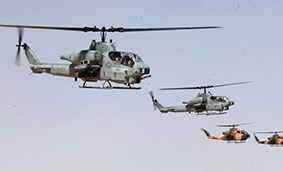 The story of the BellUH-1 Iroquois— an icon of the Vietnam War and one of the most numerous types of helicopters constructed — is closely related to the development of the BellAH-1. TheUH-1 made air cavalry theory practical, because the new tactics called for highly mobile US forces across a wide area. They wouldn't stand and fight long battles unlike before and they wouldn't stay and hold positions. Rather, the plan was that the troops carried byUH-1 "Hueys" fleets would spread across the country, sometimes fighting the enemy and places of their own choice. It soon became clear that the unarmed troop helicopters were vulnerable to ground fire from Viet Cong and North Vietnamese troops, particularly when they came down in a landing zone to drop their troops. Despite friendly artillery or ground forces support, the only way to pacify a landing zone was from the air, preferably with an aircraft capable of closely escorting the transport helicopters, and loitering over the landing zone as the war progressed. In 1962 a limited number of armed UH-1As, armed with multiple machine guns and rocket racks, were used as escorts. The massive expansion of Vietnam's American military presence opened up a new era of air warfare.