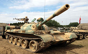The Type 59 main battle tank is a variant of the Soviet T-54A, the earliest iteration of the iconic T-54/55 series, manufactured in China. The first vehicles were assembled in 1958 and were put into service in 1959, with serial production starting in 1963. More than 10,000 of the tanks were made with about 5,500 serving with the Chinese armed forces by the time production ended in 1980. The tank formed the backbone of the Chinese People's Liberation Army with an estimated 5,000 later Type 59-I and Type 59-II models in service in 2002 up until the early 2000s.